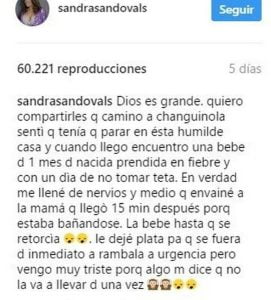 Esta situación, hizo que Sandra decidiera dejarles dinero para que le brindaran una rápida atención médica a la recién nacida, pero algo en su interior le decía que «no la llevarían de inmediato».