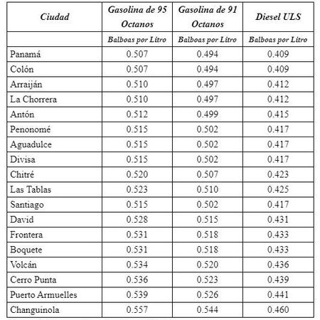 Tanto la gasolina 91 octanos así como la de 95 octanos incrementará su precio B/.0.029, mientras que el litro de diésel registrará una baja de B/.0.032.