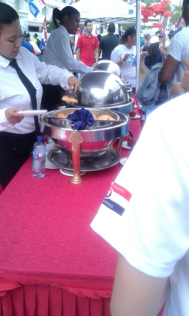 Mientras los seguidores del candidato aguantaron horas de sol y algunos fueron trasladados con promesas monetarias que no se cumplieron (y hasta se les dio comida en mal estado, como denuncia esta tuitera) para los invitados «VIP» del evento hubo buffet libre y otras especiales atenciones.