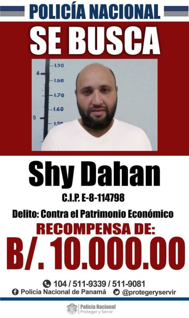 La Policía Nacional ofreció una recompensa de 10 mil dólares a quién suministre información que permita la captura de Shy Dahan, ciudadano israelí que se fugó el pasado 14 junio del centro penitenciario La Joyita.