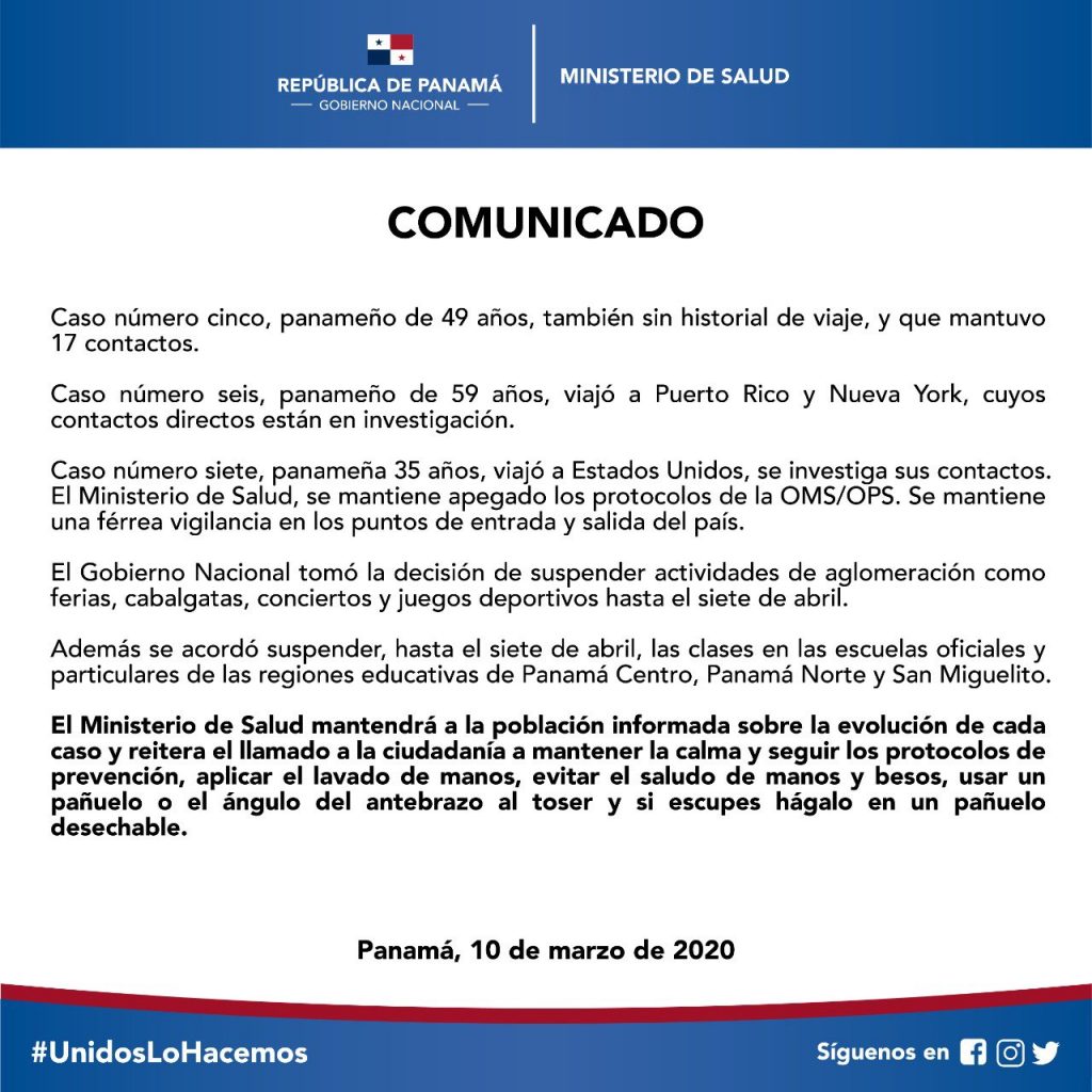 *Suspensión de actividades escolares hasta el 7 de abril en Panamá Centro, Panamá Norte y San Miguelito